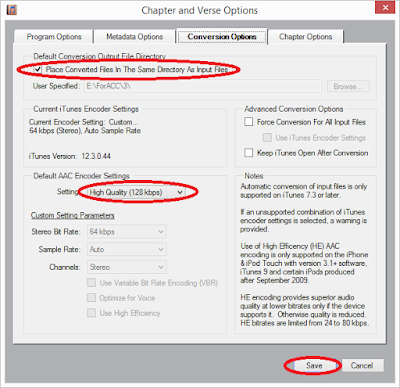 Ниже в разделе Default ACC Encoder Settings выберите «High Quality (128 kbps)», это оптимально даже для прослушивания музыки. Если по каким то причинам вас это не устраивает, выберите Custom и настройте вручную. По окончании нажмите Save.