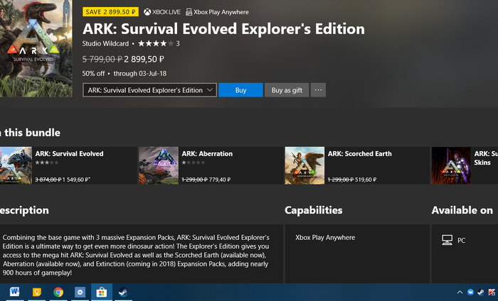 ошибка описания внутри, ибо в заголовке указана программа Play Anywhere, что значит о одновременной покупке на две платформы. Забавно, если гуглить, то веб версия показывает, что доступно только на Xbox One https://www.microsoft.com/ru-ru/p/ark-survival-evolved-explo.