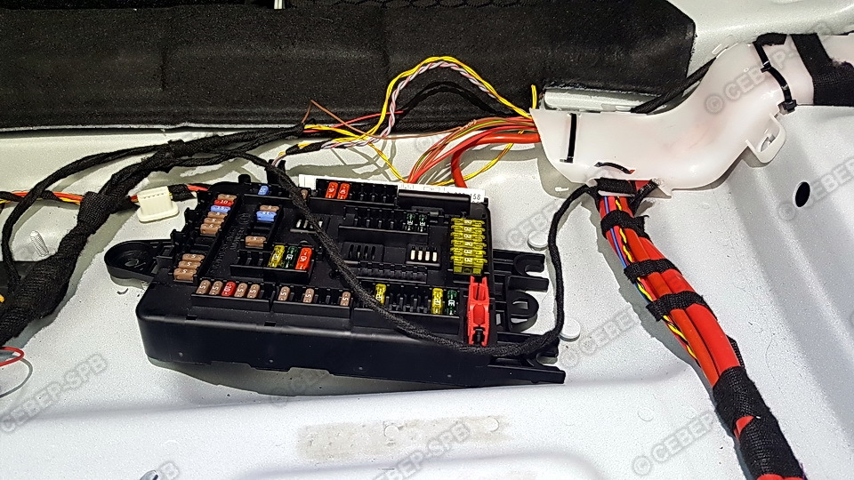 Блок этот по феншую ставится в багажнике. И соединяется с головным устройством длиннющим HSD проводом. Чтобы не глючило и радовало, провод нужен целый. Мне как раз удачно подвернулась коса от F30.