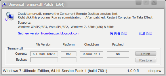- Для 64bit(x64): UniversalTermsrvPatch-x64.exe