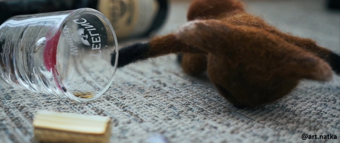 Материалы: шерсть (валяние) , полимерная глина, внутри проволочный каркас, глаза — пластик.