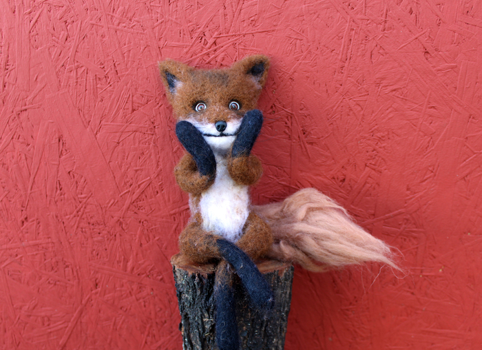 Упоротый лис свалян из шерсти, внутри лап проволока. У Ъуъ тоже лапки на проволочном каркасе.
