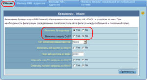 Параметры межсетевого экрана находятся в одноименной вкладке. Меню разделено на несколько разделов. Первый называется «базовый» и содержит стандартные настройки.