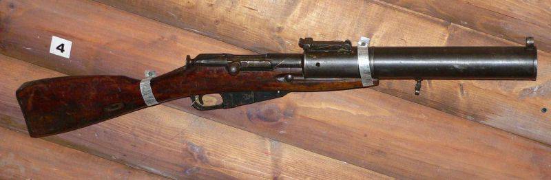 1. Винтовка Мосина образца 1891 года, смонтированная в приспособление для стрельбы из-за укрытий